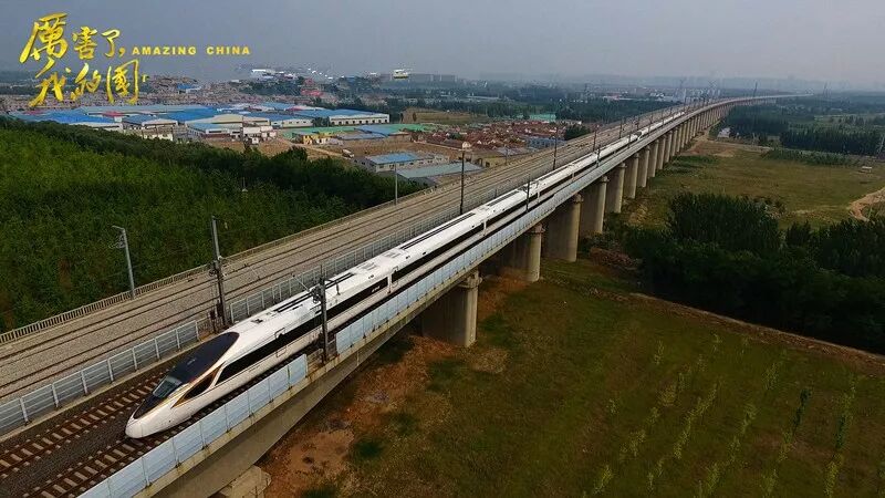 镜头描述:中国速度最快的高铁列车。2017年6月26日,中国最快高铁--复兴号在北京南站和上海虹桥站双向首发,两车交汇时速度均达到420km/h。