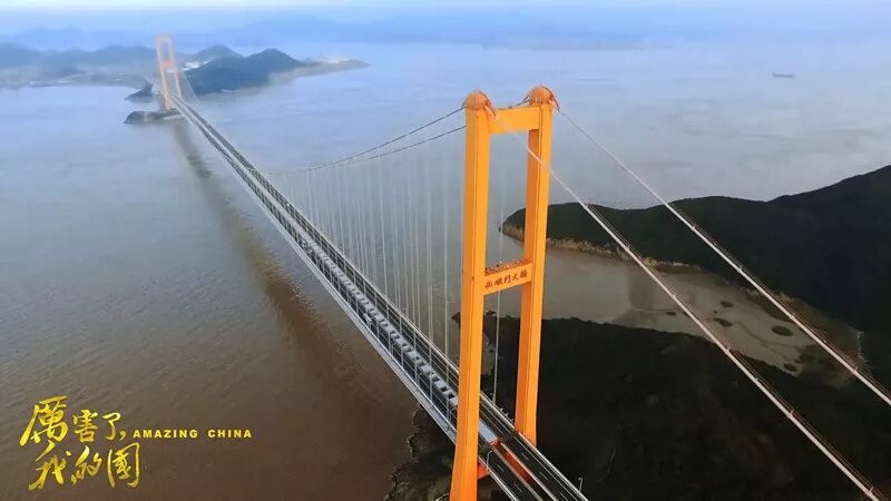 镜头描述:舟山连岛工程,共建“岑港大桥、响礁门大桥、桃夭门大桥、西堠门大桥和金塘大桥”5座大桥,全长48.16公里,其中多座特大桥跨径均进入世界前10名,是世界规模最大的岛陆联络工程。其中,西堠门大桥是世界第一跨度的钢箱梁悬索桥,目前悬索桥世界第二、国内第一。