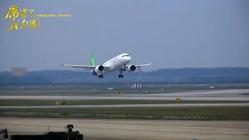 镜头描述:C919大飞机是中国首款按照最新国际适航标准,具有自主知识产权的干线民用飞机。