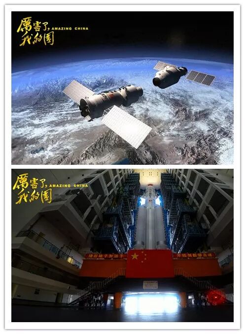 镜头描述:天宫系列、神舟系列,显示了我国在航天领域的巨大突破。