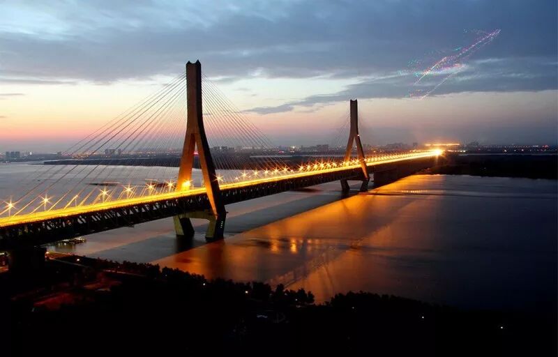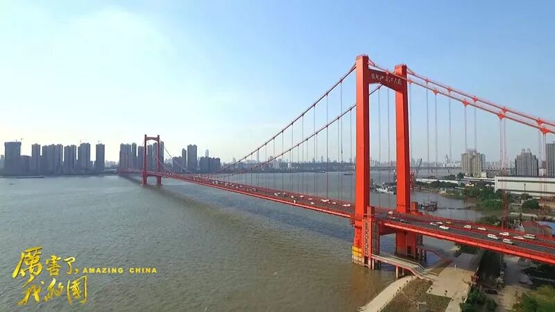 镜头描述:鹦鹉洲长江大桥,世界首座主缆连续的三塔四跨悬索桥。