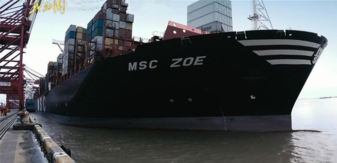 镜头描述:洋山深水港,全球最大智能集装箱码头。